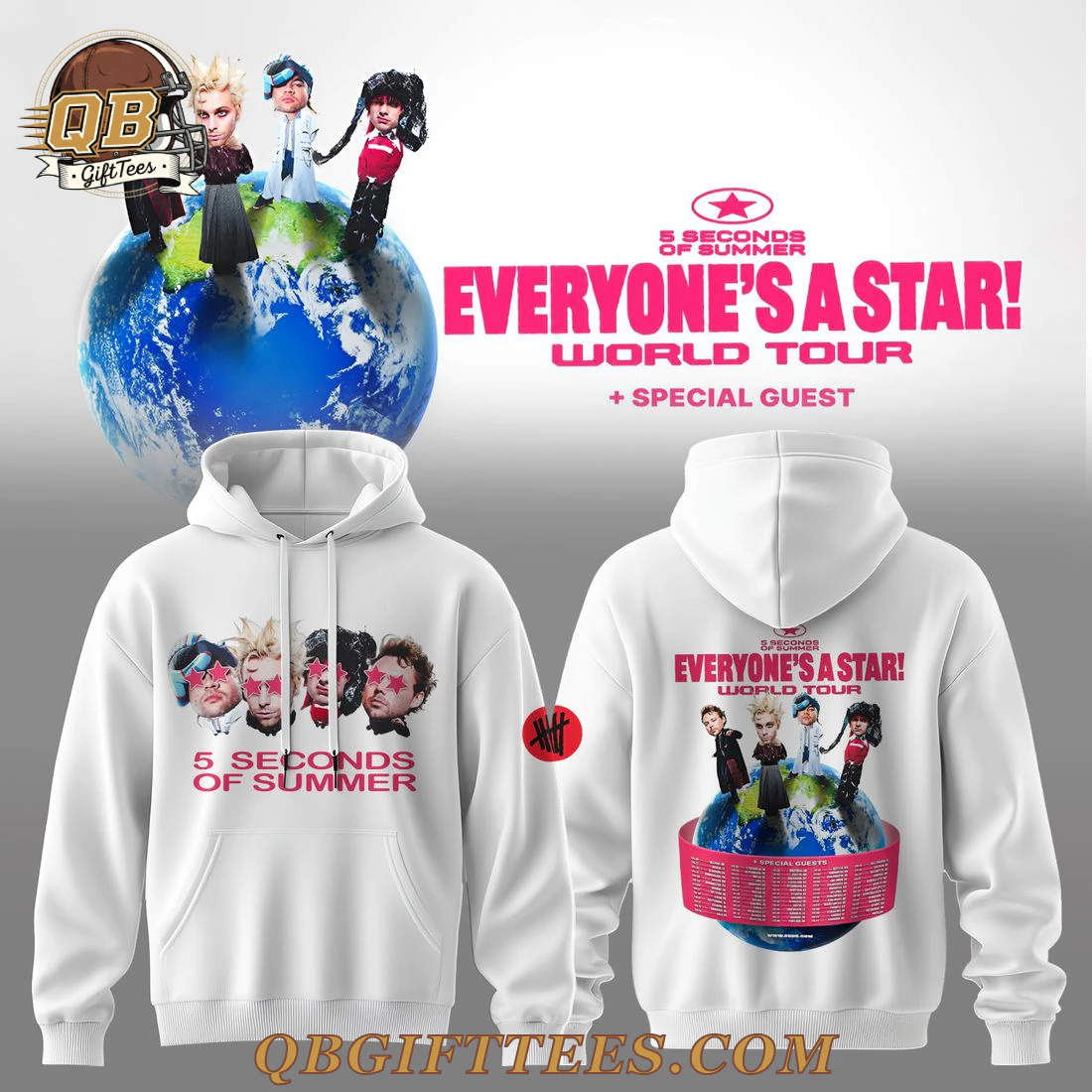 Connect with 5 Seconds Of Summer’s tour legacy. The 5 Seconds Of Summer Everyones A Star T-Shirt features unique cartoon caricatures. Enjoy comfortable, lasting fan apparel. Order yours now….