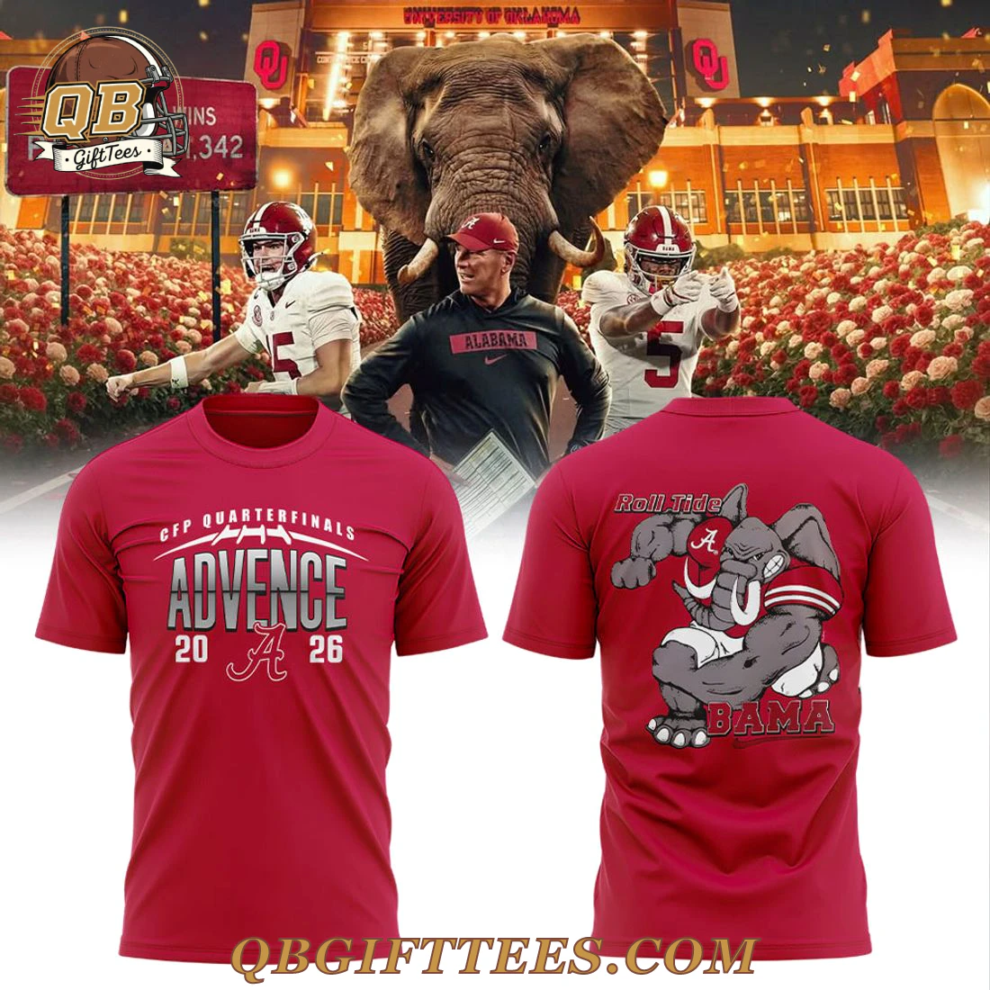 This Alabama Crimson Tide WAY BACK TO ADVANCE Edition Red Hoodie connects deeply with fans who envision the team’s ongoing legacy and future successes. It’s designed for those who celebrate every victory and anticipate what’s next for the Crimson Tide, appealing to a broad spectrum of the fanbase, from seasoned alumni to new supporters. The front of this vibrant red hoodie proudly displays “CFP QUARTERFINALS” in a clear white and grey font above the prominent silver-grey gradient text “ADVANCE,” signifying forward momentum. Below, the year “20 A 26” is boldly featured with the classic Alabama ‘A’ emblem. The back side of this Alabama Crimson Tide WAY BACK TO ADVANCE Edition Red Hoodie showcases a dynamic graphic of the iconic “Big Al” elephant mascot, flexing his muscles in a white jersey with a red ‘A’ and “Roll Tide” arched above him, with “BAMA” below. Crafted from a comfortable 50% cotton, 50% polyester fleece blend, this hoodie offers a mid-weight feel ideal for diverse climates, ensuring both warmth and breathability. It features a standard pouch pocket and adjustable drawstrings.