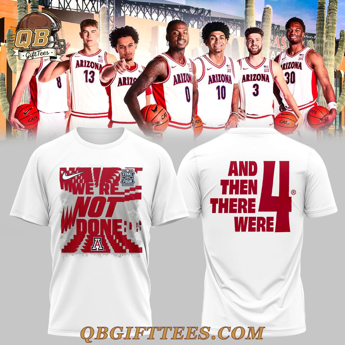 For every Arizona Wildcats fan, the Arizona Wildcats Final Four 2026 Edition For Fan Hoodie represents the enduring spirit and anticipation of postseason glory. This comfortable fan apparel is designed to unite supporters across all generations. The front of the white hoodie prominently features the phrase “WE’RE NOT DONE:” in a dynamic red and white font, underlined by a distinctive red and white geometric pattern. Positioned on the upper left chest is a subtle swoosh logo, while the upper right displays the official Final Four 2026 emblem. A bold red “A” logo, symbolizing the Wildcats, is placed near the bottom of the main graphic. The reverse of the hoodie emphatically declares “AND THEN THERE WERE 4” in large, striking red lettering, with the ‘4’ visually emphasized. Crafted from a mid-weight 8 oz/yd² (270 gsm) blend of 50% cotton and 50% polyester fleece, this hoodie offers a soft, comfortable feel and reliable durability.