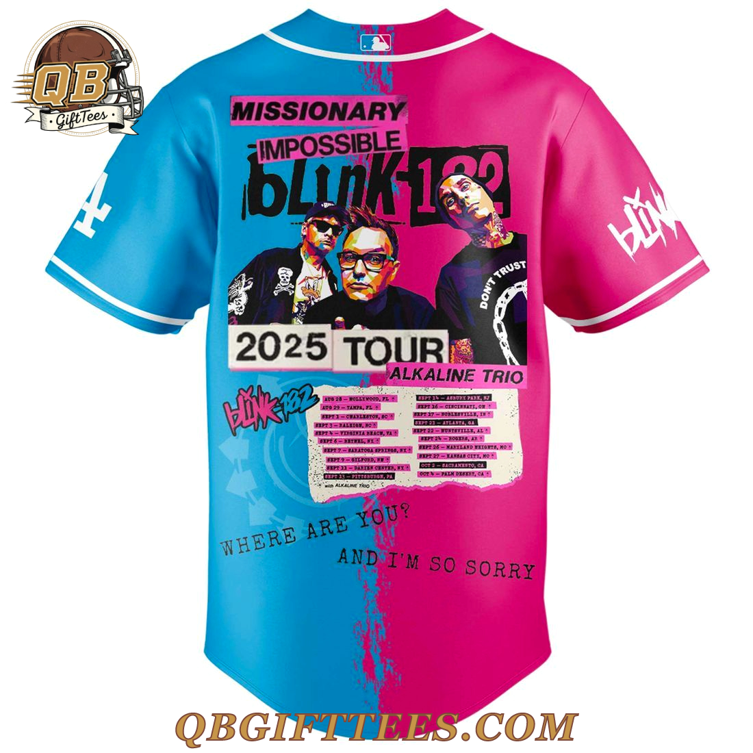 ,Blink-182 x LA Dodgers 2025 Missionary Impossible Tour Baseball Jersey,Blink-182 x LA Dodgers 2025 Missionary Impossible Tour Baseball Jersey