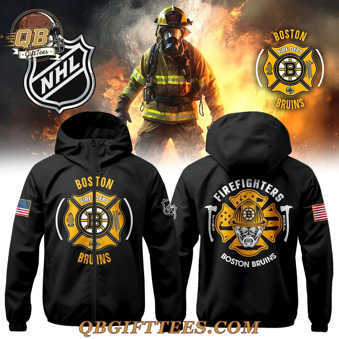 Connecting with the enduring spirit of Boston and the unwavering dedication of its fans, the Boston Bruins Firefighter Appreciation Night T-Shirt is a proud tribute to local heroes. This garment celebrates the synergy between the beloved Bruins and the courageous firefighters who serve the community. The front of this black t-shirt prominently features a unique, gold and white Maltese cross emblem, traditionally associated with firefighting, with the iconic Boston Bruins ‘B’ logo at its center. Above the emblem, “BOSTON FIRE DEPT” is displayed, and “BRUINS” is printed below, creating a powerful statement of local pride. An American flag patch adorns the left sleeve, while the official NHL shield logo is positioned on the right sleeve. The back design showcases “FIREFIGHTERS” arched over a stylized, gritty firefighter’s helmet, featuring the Bruins ‘B’, flanked by two crossed axes, reinforcing the theme of strength and service, with “BOSTON BRUINS” printed beneath. Crafted from 100% polyester fabric, this t-shirt offers a smooth feel and vibrant graphic retention, weighing approximately 5.3 oz/yd² (180 g/m²).