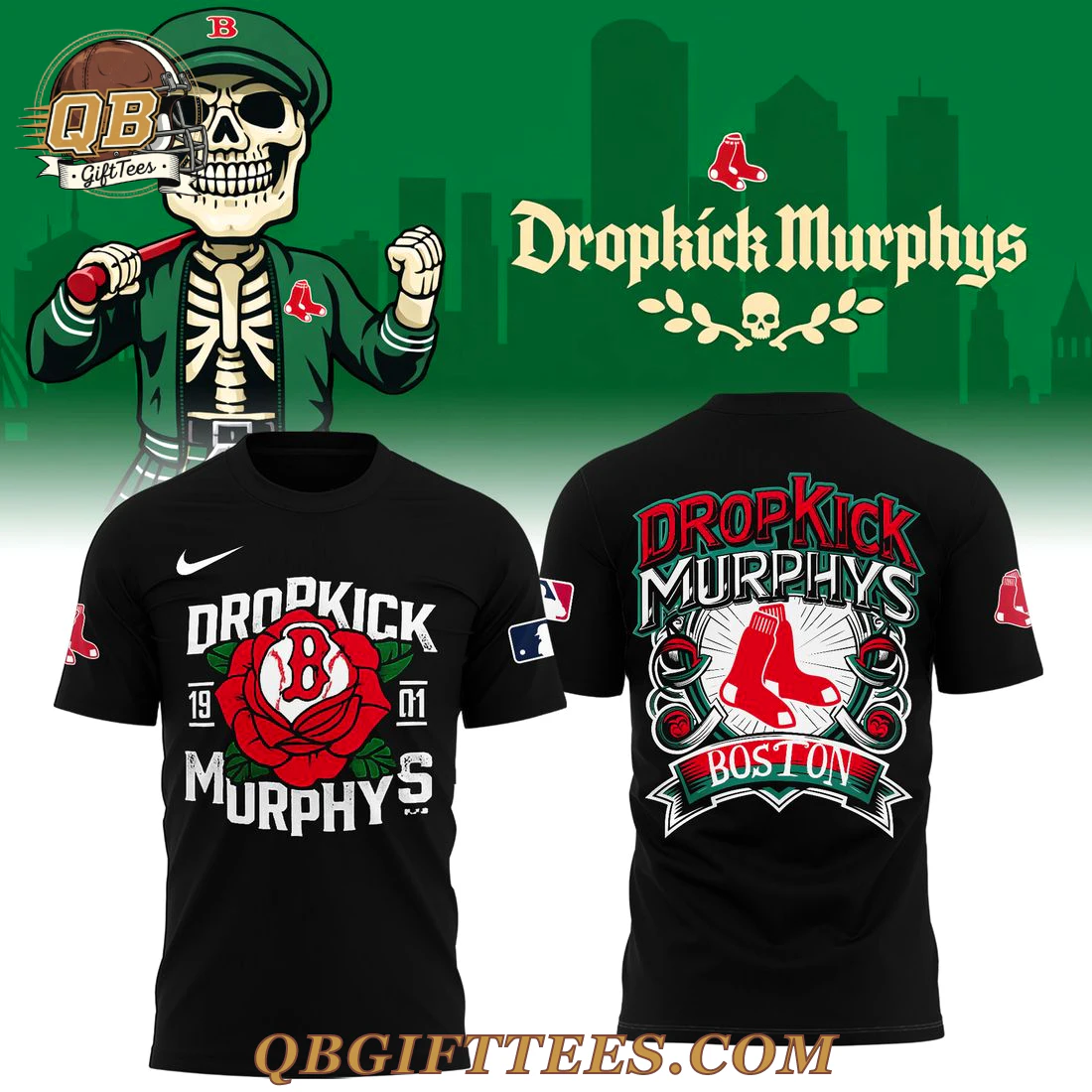 For fans who embody the grit of Boston baseball and the anthemic energy of its iconic punk rock, the Boston Red Sox Dropkick Murphys Edition Black Hoodie seamlessly blends two beloved pillars of the city’s culture. This premium full-zip black hoodie features a distinctive front design with “DROPKICK” and “MURPHYS” in bold white lettering, separated by a striking red rose emblem encasing the number ‘8’, flanked by ’19’ and ’01’. A subtle white swoosh adorns the upper chest, while official Boston Red Sox ‘B’ and MLB logos are proudly displayed on the left and right sleeves respectively. The reverse showcases a vibrant design with “DROPKICK MURPHYS” in red and green, centered around the classic Red Sox socks logo, framed by intricate green Celtic knotwork and a “BOSTON” banner. Constructed from a durable 80% cotton, 20% polyester fleece blend, this hoodie offers a comfortable medium-weight fabric at approximately 8.5 oz/yd² (280 gsm), providing both warmth and breathability for everyday wear. It features a standard athletic fit designed for comfort and layering.