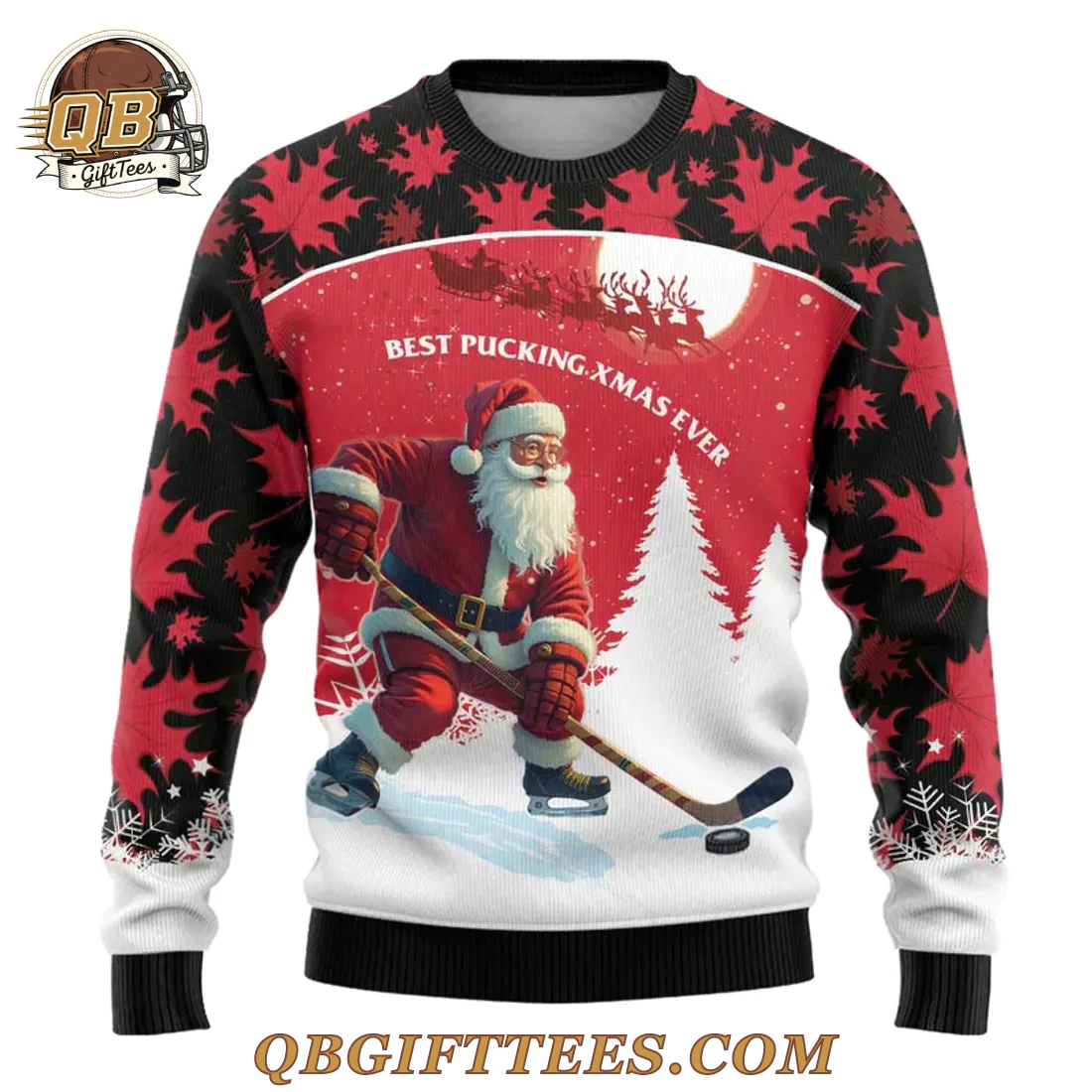 Canada Christmas Ugly Christmas Sweater Santa Claus Hockey Player