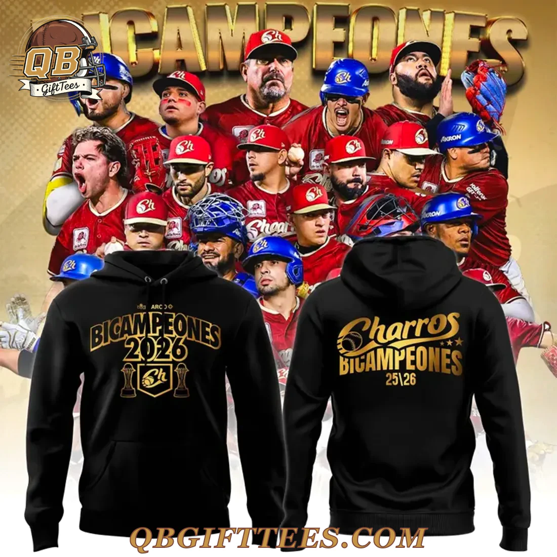 Elevate your Charros pride. This Charros BICAMPEONES DE LA LIGA 2026 Hoodie celebrates their 2026 win. Featuring durable gold print, it provides comfort and showcases your loyalty. Get yours….