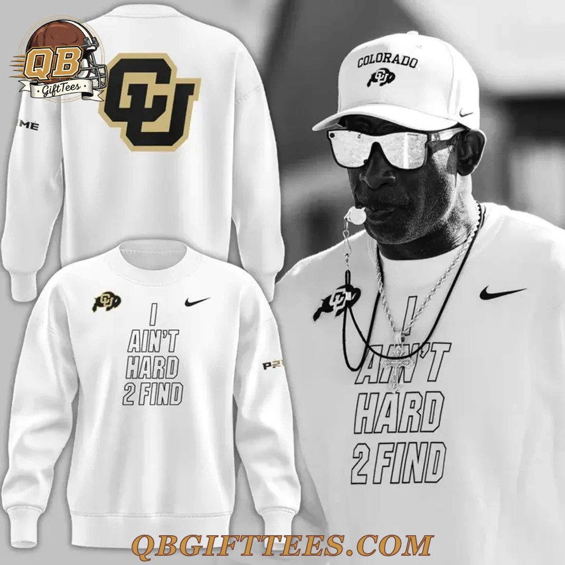 For fans who resonate with Coach Prime’s electrifying energy and unmistakable presence, the Coach Prime I AINT HARD TO FIND Edition White T-Shirt serves as a direct connection to his impactful persona. This authentic fan apparel proudly displays the “I AIN’T HARD 2 FIND” slogan on the front in bold black lettering, a phrase synonymous with Deion Sanders’s confident approach. Above this iconic text, a smaller, intricately designed University of Colorado Buffaloes logo in black and gold is positioned, with the distinctive swoosh visible on the right chest. The left sleeve features “PRIME” in black text, while the reverse side of the shirt showcases a prominent, large University of Colorado Buffaloes logo, also in black and gold, ensuring your allegiance is clear from every angle. Crafted from a soft, premium 100% pre-shrunk cotton fabric, this t-shirt offers a comfortable, regular fit suitable for all-day wear. The material ensures minimal shrinkage after washing, maintaining its shape and feel.