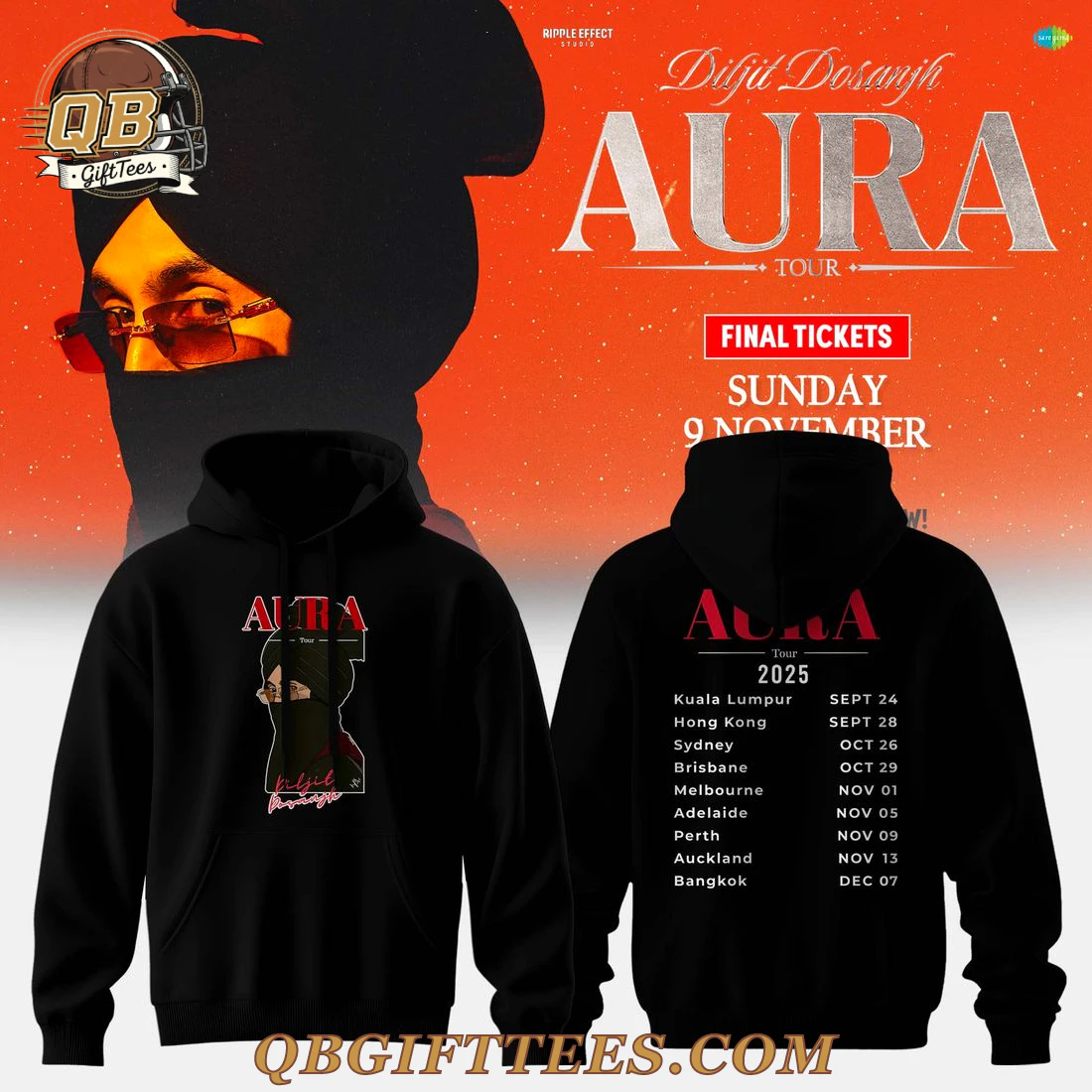 Channel Diljit Dosanjh’s Aura Tour. This DILJIT DOSANJH Aura Tour Special Edition Shirt features the iconic front graphic and 2025 tour dates on the back. Wear your tour pride. Get yours now….