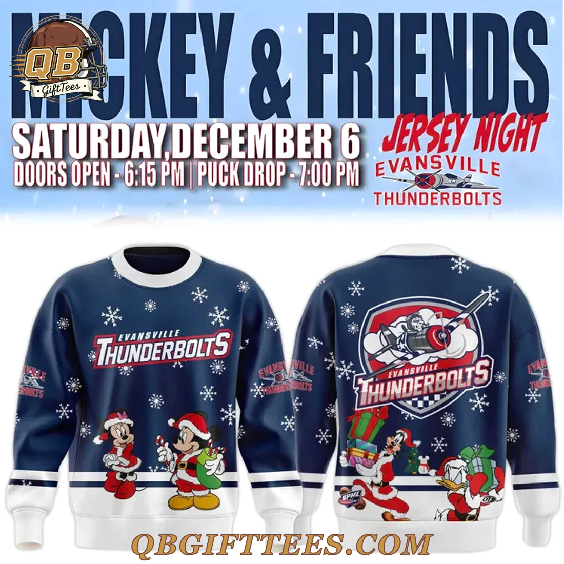 Evansville Thunderbolts x Mickey Merry Christmas 2025 Limited Edition Hoodie