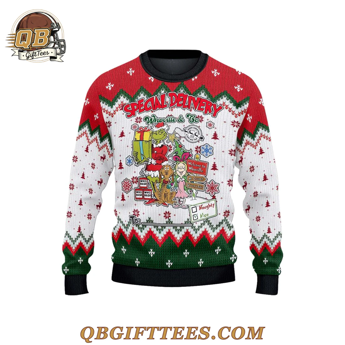 Grinch fans seeking quality, the Gleammerch The Grinch x Christmas Ugly Sweater showcases a ‘Whoville Special Delivery’ graphic. Perfect for festive comfort. Shop now….
