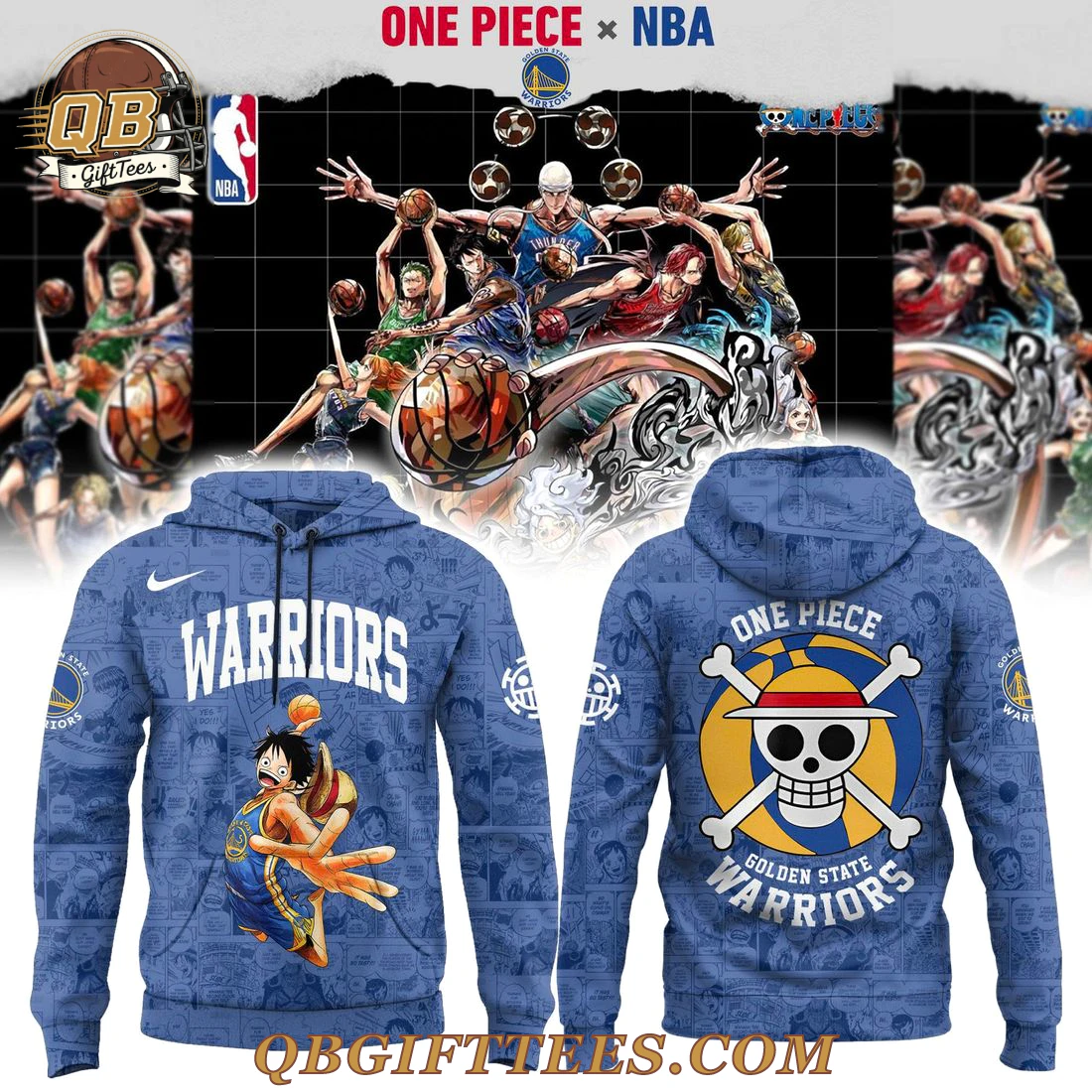 The Golden State Warriors x D.luffy Edition For Fan Hoodie offers a unique convergence for devoted fans of both the legendary Golden State Warriors and the epic saga of One Piece. This hoodie features a dynamic blue base color, intricately overlaid with authentic manga panel graphics throughout, immersing wearers in the One Piece universe. The front boldly displays “WARRIORS” in white block lettering across the chest, with the iconic Golden State Warriors logo on the left and a subtle swoosh on the right. Below, D. Luffy is depicted in his signature action pose, extending his arms with a determined expression. The reverse showcases a prominent “ONE PIECE” logo above the distinctive Straw Hat Pirates Jolly Roger, centered above “GOLDEN STATE WARRIORS,” integrating the team’s emblem. This hoodie is crafted from a premium polyester blend fabric with a soft-brushed interior, ensuring warmth and comfort, while the high-definition sublimation print delivers vivid, long-lasting imagery. It offers a standard hooded sweatshirt fit.