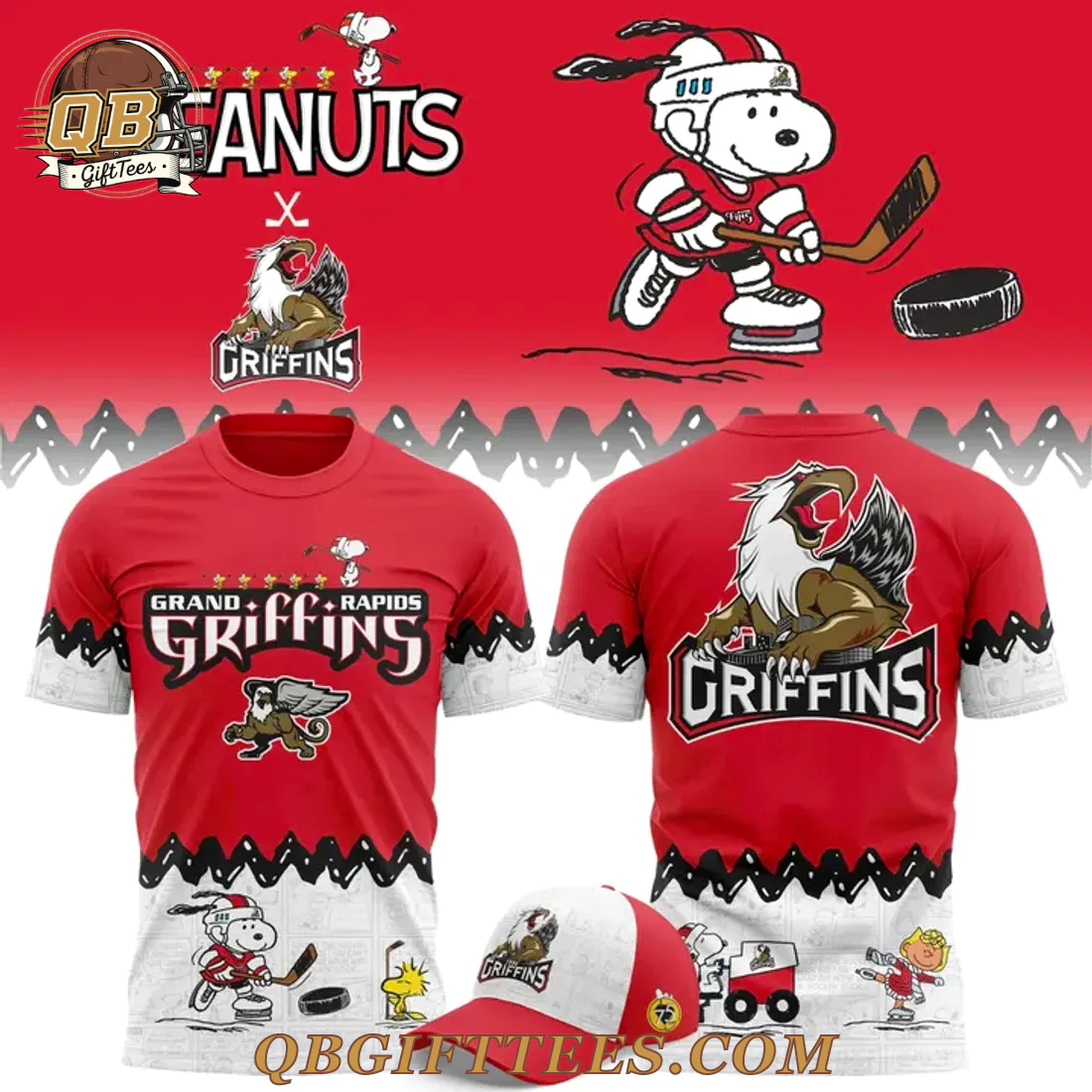 For fans who appreciate the spirit of hockey alongside the timeless charm of Charles Schulz’s Peanuts characters, the Grand Rapids Griffins x Peanuts Night Snoopy 2026 Limited Edition Hoodie is a unique fusion of fandom and nostalgia. This collector’s item features a vibrant red body with a contrasting black hood and drawstrings. The front proudly displays the “GRAND RAPIDS GRIFFINS” wordmark logo, complete with a small flying griffin mascot, set against a backdrop featuring Snoopy expertly playing hockey on a white, comic-strip panel lower section. The sleeves and lower back continue this playful motif, showcasing various Peanuts characters in dynamic, hockey-themed vignettes, including Snoopy driving a Zamboni. A distinct black zig-zag pattern separates the red and white sections, creating a cohesive design. This hoodie is crafted from a soft-touch polyester blend fabric, designed for comfort and to showcase its vibrant, full-surface dye-sublimated graphics.