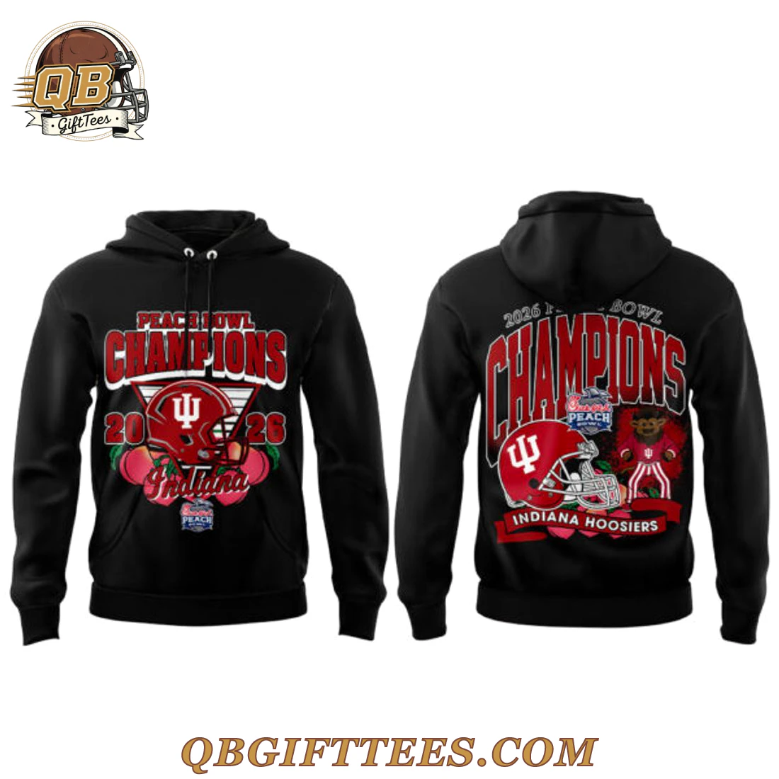 ,Indiana Hoosiers Peach Bowl Champion 2026 For Fan Hoodie,Indiana Hoosiers Peach Bowl Champion 2026 For Fan Hoodie