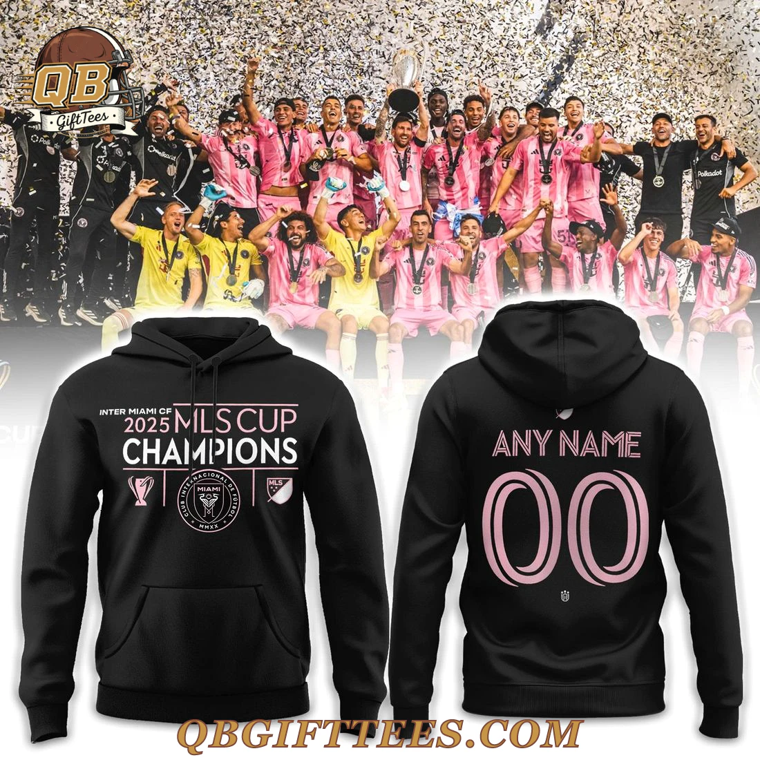 ,Inter Miami CF Black 2025 MLS Cup Champions Custom Name Hoodie,Inter Miami CF Black 2025 MLS Cup Champions Custom Name Hoodie