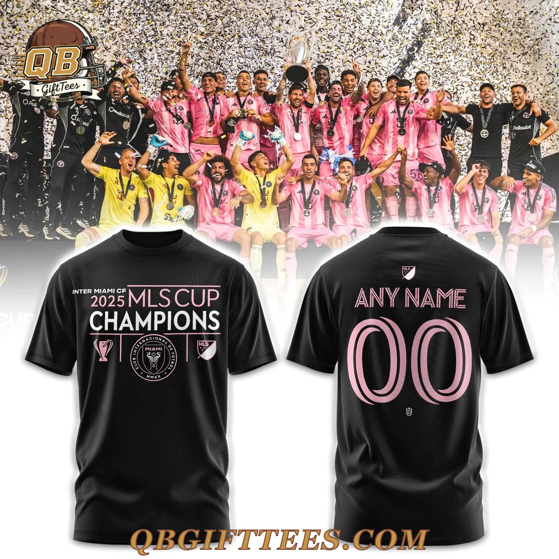 Inter Miami CF Black 2025 MLS Cup Champions Custom Name Hoodie