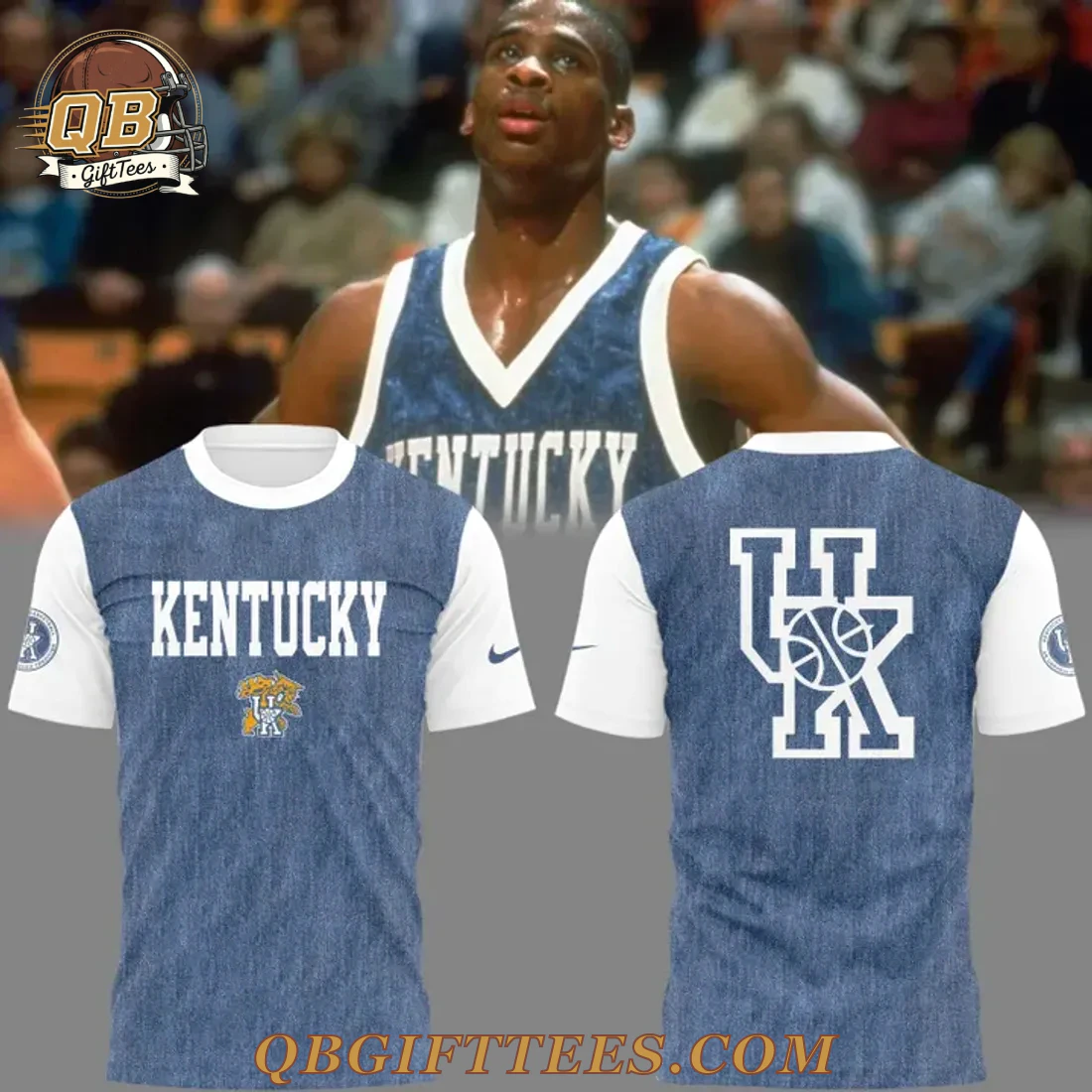 For fans who live and breathe blue and white, the Kentucky Wildcats Throwback 2026 Edition Hoodie connects generations of Wildcat faithful, from campus mainstays to dedicated alumni. This hoodie features a distinctive blue body with a textured, denim-like finish on both the front and back, complemented by crisp white sleeves and a matching white hood. The front proudly displays “KENTUCKY” in bold white block letters across the chest, with a classic golden-yellow Wildcat mascot head emblem positioned directly below. A subtle circular UK shield emblem adorns the left sleeve, while a blue swoosh marks the right. The back showcases a prominent white “UK” logo, cleverly integrated with a basketball design. Crafted from a comfortable 80% polyester and 20% cotton blend, this mid-weight hoodie offers an estimated fabric density of 8.5 oz/yd² (290 gsm) for a soft, comfortable feel and vibrant, fade-resistant printing. Designed in a standard adult unisex fit, it includes a practical kangaroo pocket and adjustable hood drawstrings.