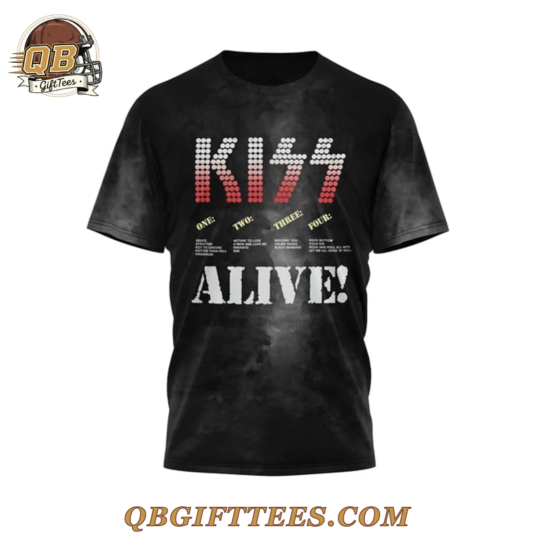 Unleash your inner rocker with the KISS Limited Edition T-Shirt. It features the legendary “Alive!” tracklist on a distinctive smoky print. Showcase your devotion to the band. Get yours….