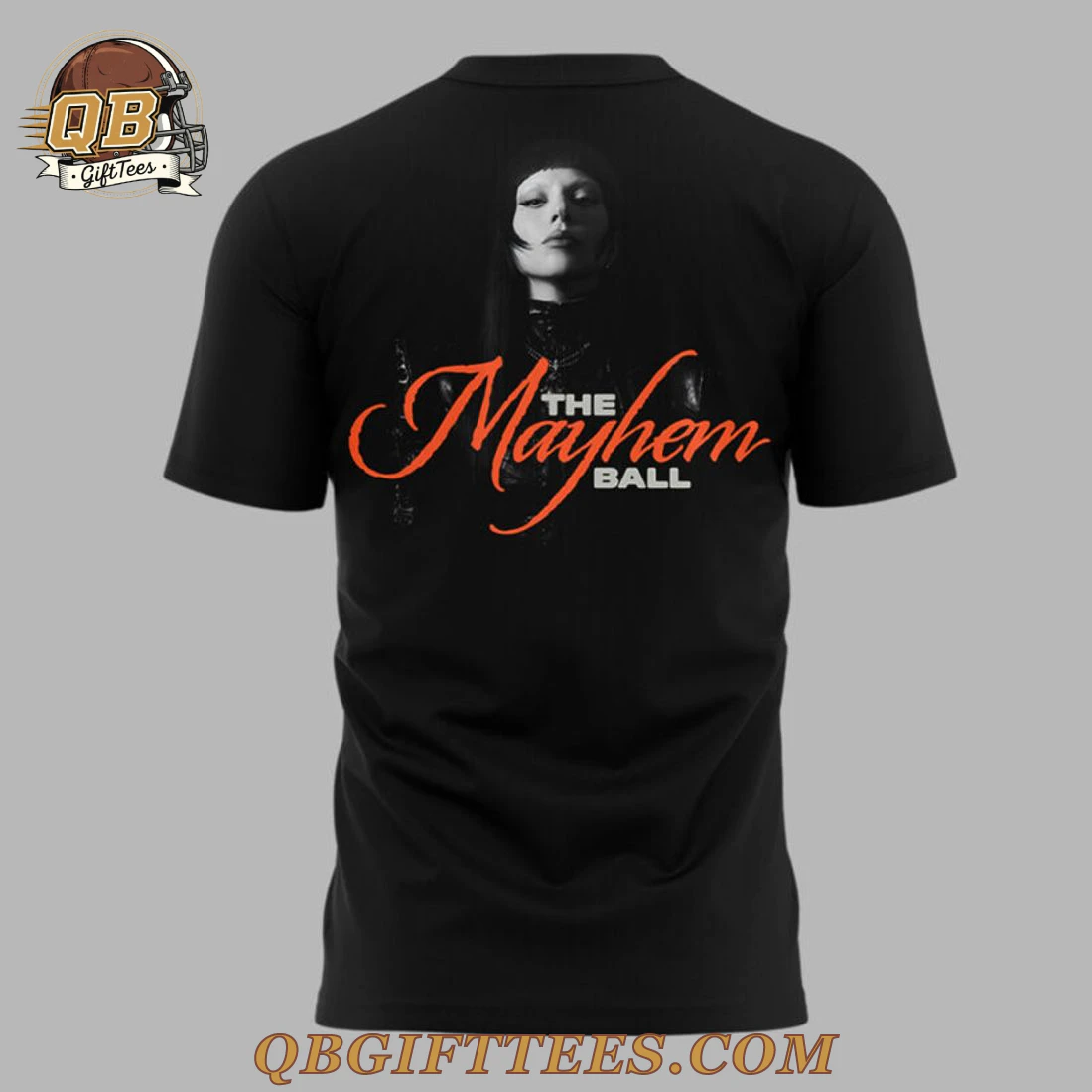 For fans who thrive on unique collaborations and iconic moments, the Lady Gaga x Vegas Golden Knights The Mayhem Ball Tour T-Shirt brings together the electrifying energy of a global pop superstar and the dynamic spirit of a championship hockey team. The front of this striking black t-shirt prominently features “MAYHEM” in a distressed, vibrant orange font, positioned directly above the instantly recognizable Vegas Golden Knights logo, rendered in its signature gold and black helmet shield design. Below the emblem, “VEGAS GOLDEN KNIGHTS” is clearly displayed, followed by “LVDY GAGA” in matching orange text, all set against the shirt’s dark background. The back showcases a compelling monochrome portrait of Lady Gaga, depicted with a sleek, hooded silhouette, beneath which the tour’s title, “The Mayhem Ball,” is elegantly scripted in an expressive orange font. This garment is crafted from 100% preshrunk cotton, offering a soft, breathable feel. It features a classic mid-weight fabric (approx. 5.3 oz/yd² or 180 g/m²) and a standard unisex fit, designed for comfort and durability.