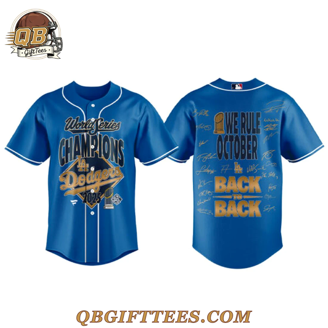 Celebrate victory! This Los Angeles Dodgers Back to Back 2025 World Series Champions Special Edition Blue Jersey has gold accents. Show loyalty. Order now….