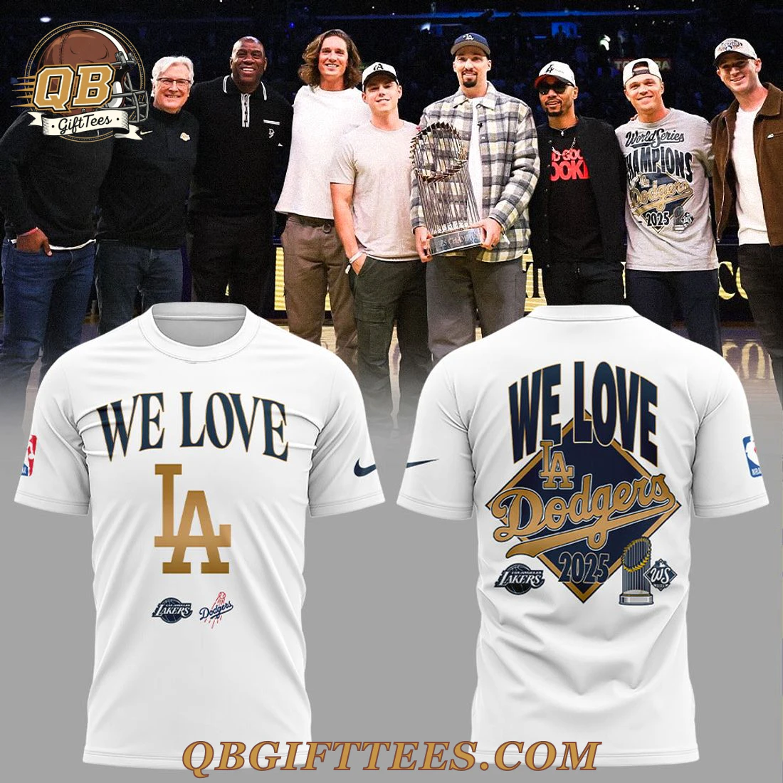 LA fans, unite! Los Angeles Lakers Celebrated the Champs Dodgers 2025 Hoodie features a bold ‘WE LOVE LA’ graphic. Display dual pride comfortably. Order today….