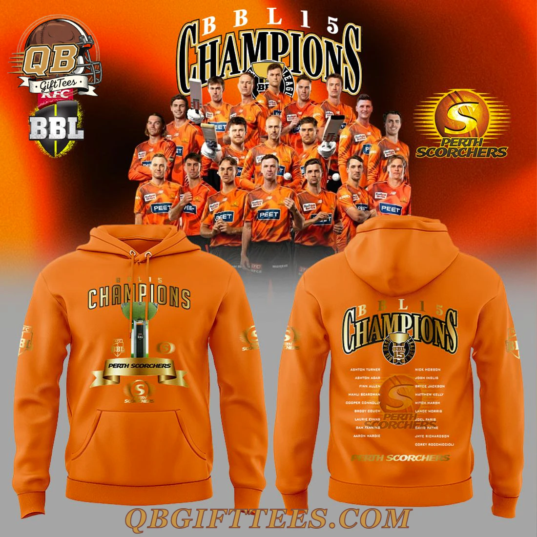 ,Perth Scorchers Champions Big Bash League 15 Orange Hoodie