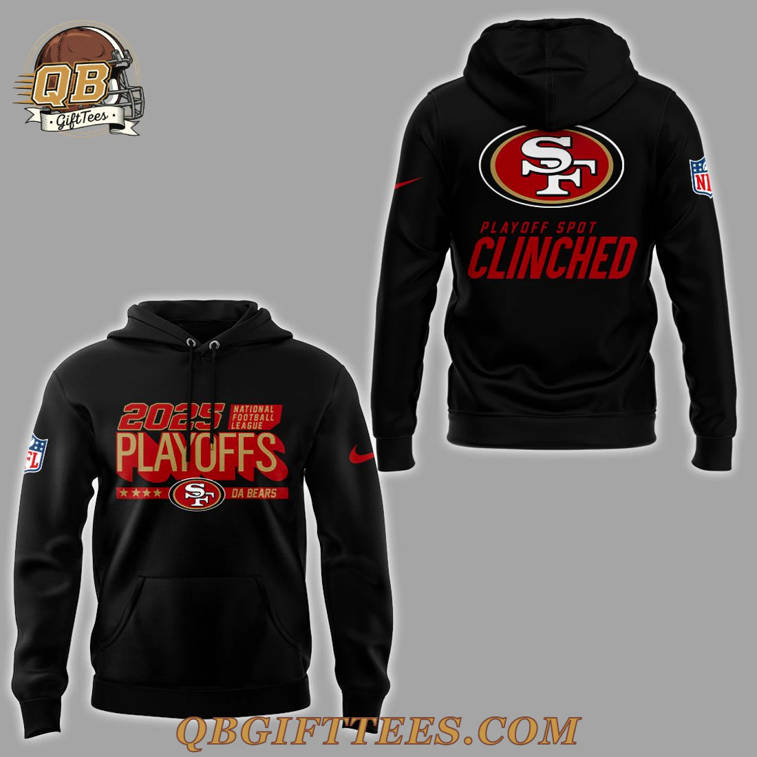 Niners! San Francisco 49ers Playoffs Clinched Special Edition Hoodie. Features ‘Playoff Spot Clinched’ back graphic. Wear pride. Order now….