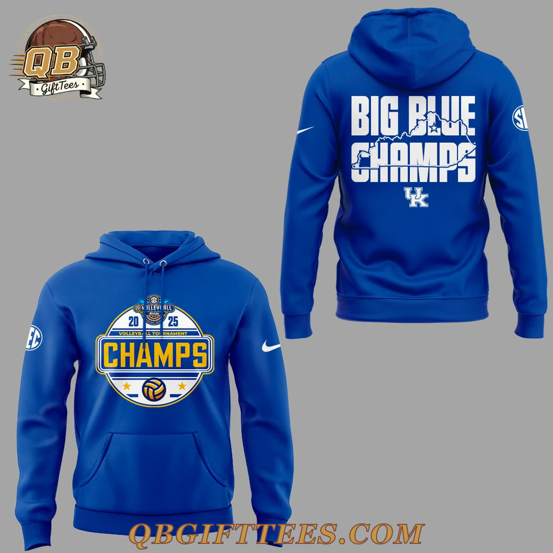 Celebrate the thrilling victory with the SEC Tournament Champions 2025 Edition Hoodie, a tangible symbol of your team’s hard work and dedication. This hoodie connects fans across all demographics, from long-time supporters to new enthusiasts, to the shared joy of a championship win. The front of this royal blue pullover features a prominent circular graphic in the center, boldly displaying “SEC Volleyball Tournament 2025” above “CHAMPS” in distinctive yellow and white block lettering. A volleyball graphic is centered at the bottom of the emblem. A small, stylized SEC logo is visible on the left sleeve, while the iconic swoosh appears on the right chest. The back showcases “BIG BLUE CHAMPS” in bold white text, artfully integrated over an outline of the state of Kentucky, with the University of Kentucky (UK) logo positioned directly below. This SEC Tournament Champions 2025 Edition Hoodie is crafted from a premium 60% cotton / 40% polyester fleece blend, offering a comfortable mid-weight feel suitable for various temperatures. It features a standard athletic fit and a drawstring hood, complete with a front kangaroo pocket.