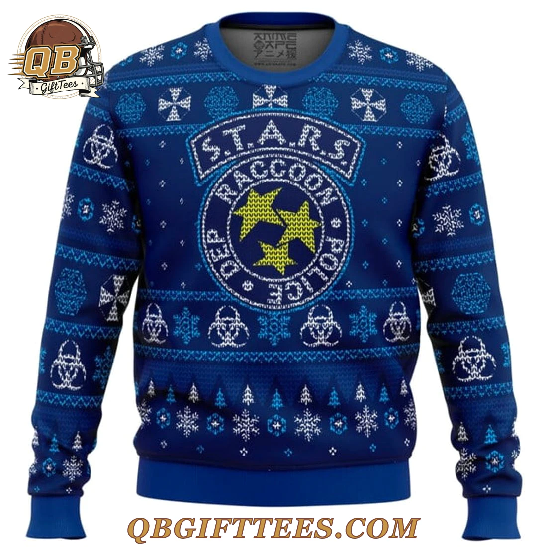 For fans who’ve navigated the horrors of Raccoon City and admired the bravery of its Special Tactics And Rescue Service, the STARS Racoon City Police Resident Evil Christmas Limited Edition Sweater offers a unique way to celebrate the holiday season. This dark blue crew-neck sweater features a classic “ugly Christmas sweater” aesthetic, adorned with white and light blue motifs. At its center, the iconic S.T.A.R.S. Raccoon Police Department logo is prominently displayed, featuring the “S.T.A.R.S.” banner above a circular emblem encircled by “RACCOON POLICE” text, with two vibrant yellow stars within. The design extends across the chest and sleeves, incorporating intricate patterns of snowflakes, biohazard symbols, and subtle pine trees, all rendered in shades of white and light blue to complement the deep blue base. Crafted from a durable and comfortable polyester blend fabric, this sweater provides a soft hand feel and resilient wear. It is designed for standard adult sizing with a comfortable weight, typically around 320-350 GSM for a substantial yet breathable garment.