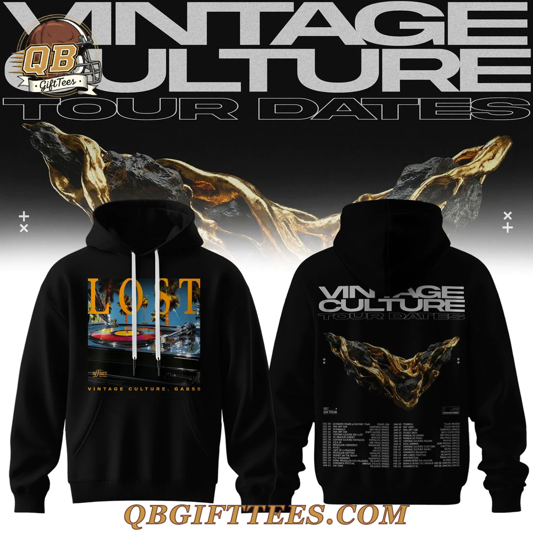 For dedicated fans of Vintage Culture, the VINTAGE CULTURE Tour Dates Limited Edition Hoodie is a direct connection to the electrifying energy of his live performances and distinct sound. This collectible piece celebrates the artistry that resonates with listeners worldwide, offering a tangible link to the music and experiences. The front features a vibrant graphic centered around the word “LOST” in a bold orange font, set above a detailed illustration of a vintage turntable spinning a red-labeled vinyl record, with a tranquil beach scene and palm trees visible in the background. Below this, “VINTAGE CULTURE, GABBS” is subtly integrated. The reverse side proudly displays the “VINTAGE CULTURE TOUR DATES” logo across the upper back, accompanied by an intriguing abstract gold and black rock formation graphic. Below, a comprehensive list of tour dates and locations is meticulously printed. Crafted from a mid-weight 80% cotton / 20% polyester fleece blend, this hoodie offers a soft brushed interior and durable exterior, designed for comfort and longevity. It features a classic pullover silhouette with an adjustable drawstring hood, ribbed cuffs, and a ribbed hem, ensuring a comfortable, standard fit.