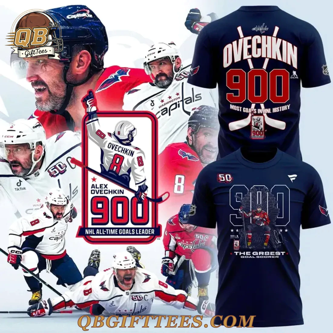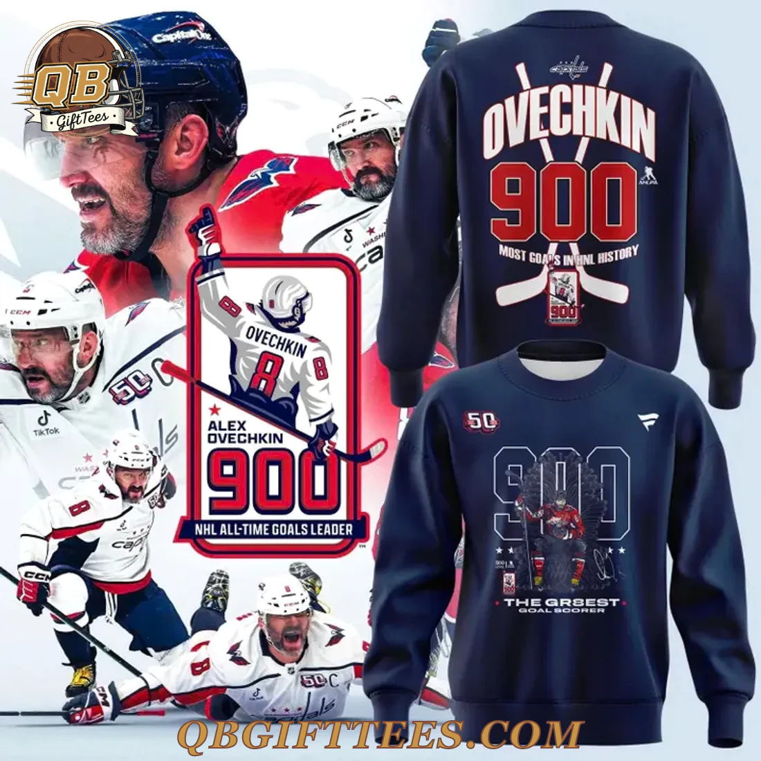The Washington Capitals Alexander Ovechkin NHL All-Time Leading Goal Scorer Cross Sticks 2025 Edition Hoodie offers fans a tangible connection to one of hockey’s greatest scorers. This navy blue hoodie features a dynamic front design with a bold “900” graphic, intricately incorporating an action shot of Alexander Ovechkin in his Capitals uniform, underlined by “THE GR8EST GOALSCORER.” A subtle cross sticks motif frames the “900,” while a “50” and the Fanatics logo are displayed on the left chest. The reverse side proudly displays “CAPITALS” and the NHL shield, followed by “OVECHKIN” above a large red “900” and the declaration “MOST GOALS IN NHL HISTORY,” with a smaller “900” crossed sticks emblem below. Crafted from a high-quality mid-weight cotton-polyester blend fleece fabric, approximately 8.0 oz/yd² (270 gsm), it features a soft-brushed interior for comfort and durable screen printing that withstands regular wear.